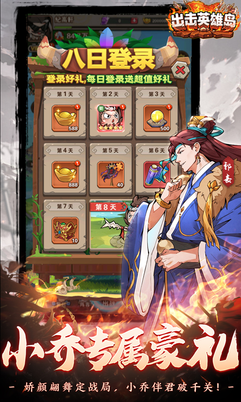 《出击英雄岛》当三国名将齐齐穿越石器时代,一场脑洞大开的爆笑碰撞就此上演!独创三国 × 石器时代题材,搭配轻松放置挂机玩法,化身咸鱼主公,告别爆肝,躺着也能飞速变强!离线自动征战,上线一键收割海量资源与丰厚奖励,轻松养成无压力。游戏采用超萌 Q 版三国画风,无厘头剧情颠覆传统三国印象,笑点密集、惊喜不断,带你体验前所未有的反差萌三国世界!